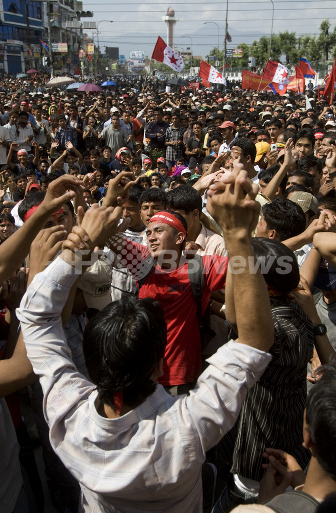 制憲議会周囲には、数千人の国王反対派がおしかけており、道路を埋め尽くした人々は「盗っ人ギャネンドラは国を去れ」などのスローガンを連呼している。