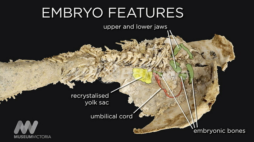 また、体内に胎児やへその緒が見つかったことで、交尾による「体内受精」を行っていたことも初めて裏付けられたという。