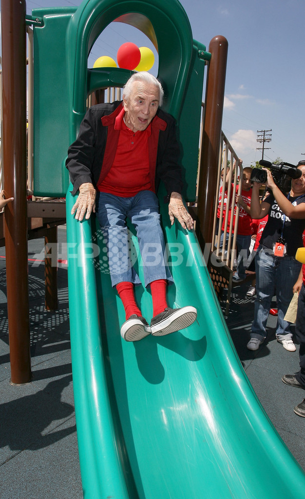 【5月29日 AFP】俳優カーク・ダグラス(Kirk Douglas)と妻のAnneさんが、ロサンゼルス(Los Angeles)のリリアン・ストリート小学校(Lillian Street Elementary School)に遊び場「Anne and Kirk Douglas 400th Playground」を寄贈した。