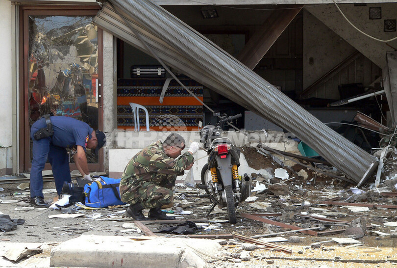 フィリピン軍のテロ対策上級司令官によると、カバンの中に隠された起爆装置を携帯電話による遠隔操作で爆破させたものとみられるという。