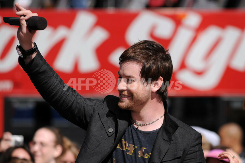 ニューヨーク(New Yrok)で、CBSの朝のニュース番組「The Early Show」に出演し、パフォーマンスを披露する米オーディション番組「アメリカン・アイドル(American Idol)」シーズン7の優勝者David Cook(2008年5月29日撮影)。(c)AFP/Getty Images/Bryan Bedder