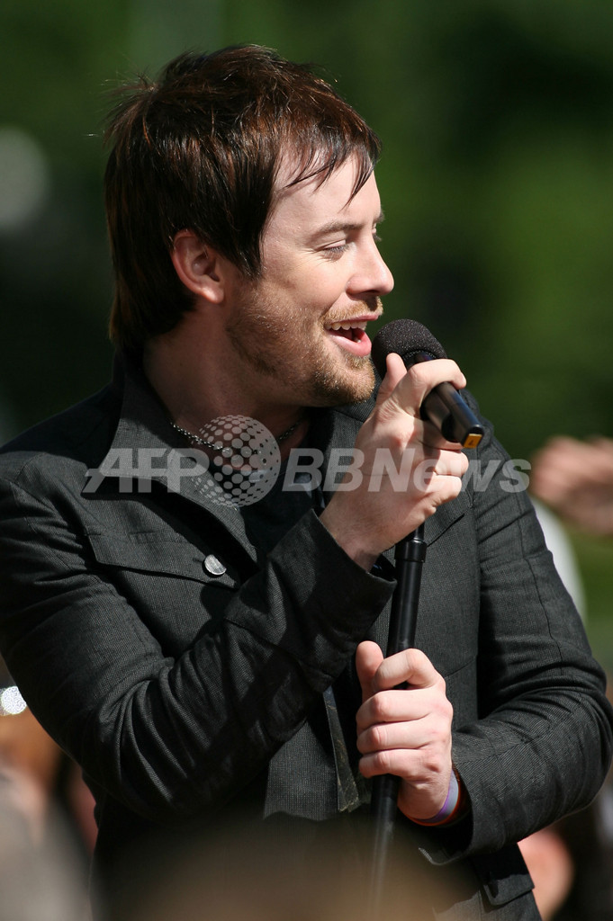 ニューヨーク(New Yrok)で、CBSの朝のニュース番組「The Early Show」に出演し、パフォーマンスを披露する米オーディション番組「アメリカン・アイドル(American Idol)」シーズン7の優勝者David Cook(2008年5月29日撮影)。(c)AFP/Getty Images/Bryan Bedder
