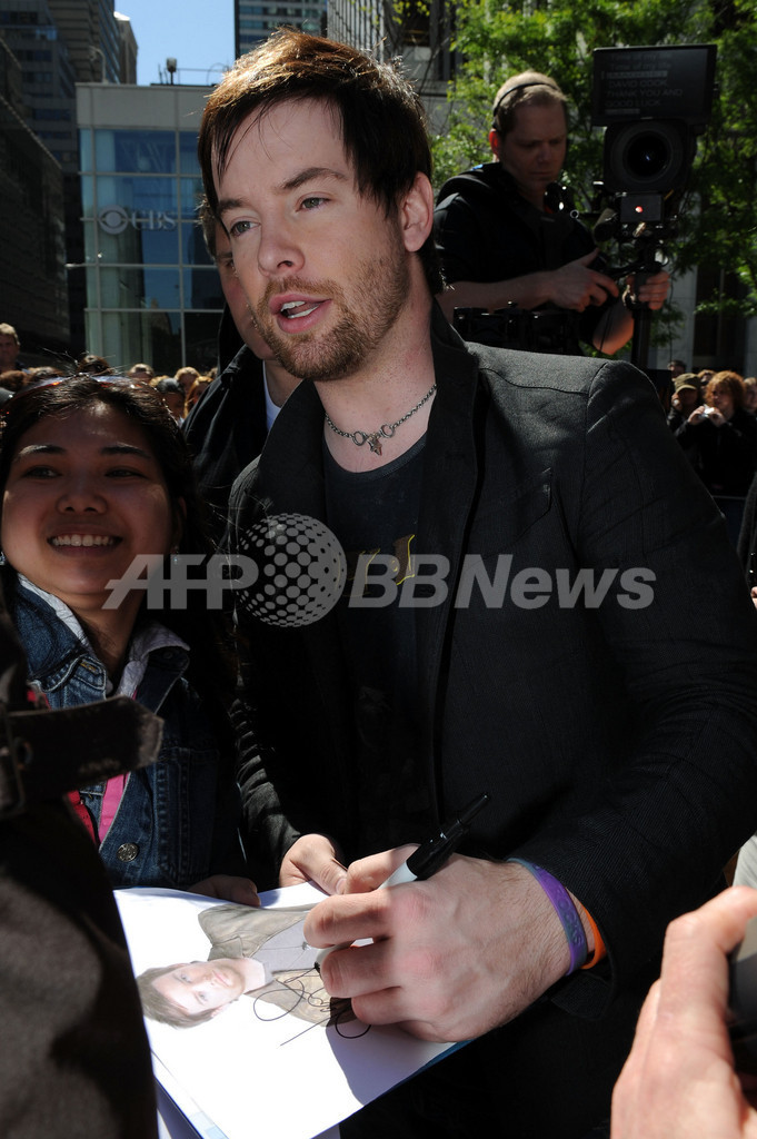 ニューヨーク(New Yrok)で、CBSの朝のニュース番組「The Early Show」に出演し、パフォーマンスを披露する米オーディション番組「アメリカン・アイドル(American Idol)」シーズン7の優勝者David Cook(2008年5月29日撮影)。(c)AFP/Getty Images/Bryan Bedder