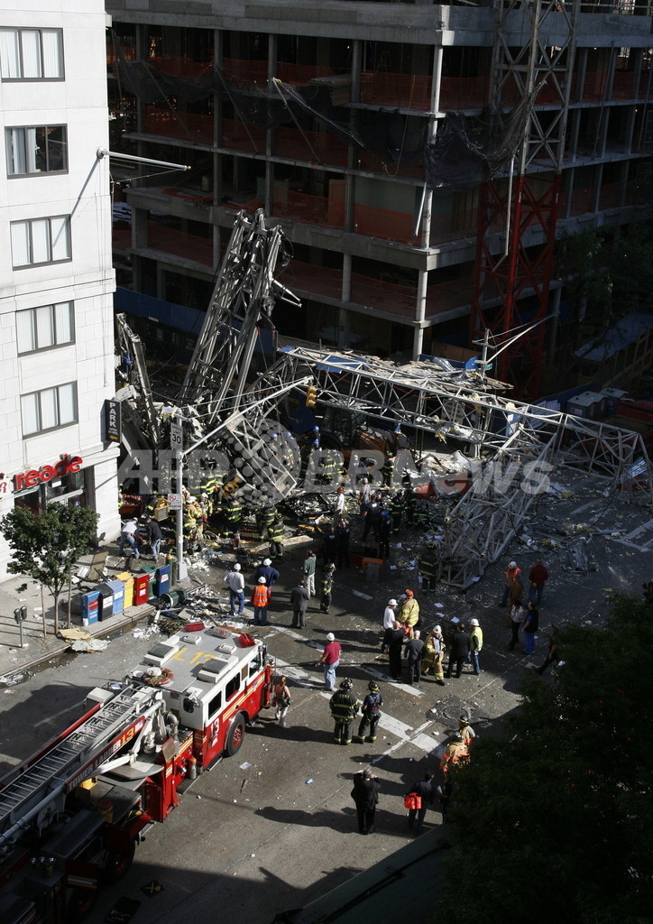 ブルームバーグ市長によると、事故があったのはマンハッタン島アッパー・イースト・サイド(Upper East Side)で、3人は作業中だった。また通行人1人が軽いけがをしたという。クレーンの落下で建設中のビルも一部損壊した。