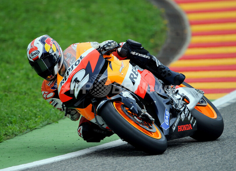 【5月31日 AFP】世界ロードレース選手権(WGP 2008)第6戦・イタリアGP・MotoGPクラス、フリー走行3回目。レプソル・ホンダ(Repsol Honda)のダニエル・ペドロサ(Dani Pedrosa) は、21周を走行してトップとなる1分49秒975を記録した。