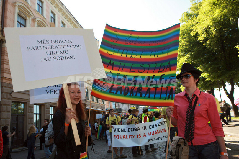 ニュース ライフ ラトビアでゲイパレード、ほのぼの賛成派に過激な反対派 2008年6月1日 17:08 発信地:リガ/ラトビア [ ヨーロッパ ラトビア ] このニュースをシェア ‹ › ❮ 9/9 ❯ ラトビアの首都リガ(Riga)で、「同性愛カップルにも夫婦と同等の権利を認めよ」と書かれたプラカードを掲げる同性愛賛成派の女性たち(2008年5月31日撮影)。(c)AFP/ILMARS ZNOTINS 画像作成中 ! 【6月1日 AFP】ラトビアの首都リガ(Riga)で5月31日、同性愛者と支持者のグループがパレードを行った。参加者らは同性愛カップルにも夫婦と同等の権利が与えられるべきなどと主張して気勢を上げた。これとは別に、同性愛に反対するグループも同日、リガで同性愛者への抗議デモや活動を行った。(c)AFP ライフ 一覧へ> メディア・報道関係・法人の方向け 写真・動画 購入のお問合せ>