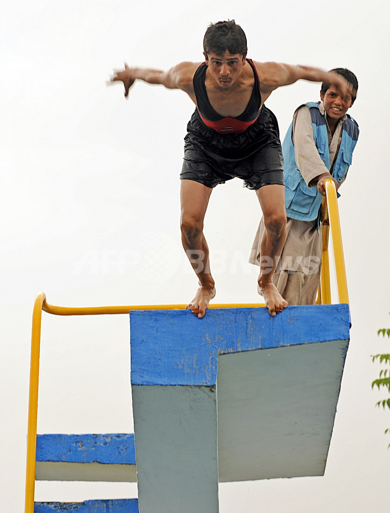ニュース ライフ アフガニスタン、気温30度近くに プールに飛込む少年たち 2008年6月1日 23:56 発信地:カブール/アフガニスタン [ アジア・オセアニア アフガニスタン ] このニュースをシェア ‹ › ❮ 2/3 ❯ アフガニスタンの首都カブール(Kabul)で、プールに飛込む少年(2008年6月1日撮影)。(c)AFP/SHAH Marai 画像作成中 ! 【6月1日 AFP】夏を目前にしたアフガニスタンで1日、首都カブール(Kabul)で気温が30度近くまで上昇し、少年らがプールを楽しんだ。(c)AFP ライフ 一覧へ> メディア・報道関係・法人の方向け 写真・動画 購入のお問合せ>