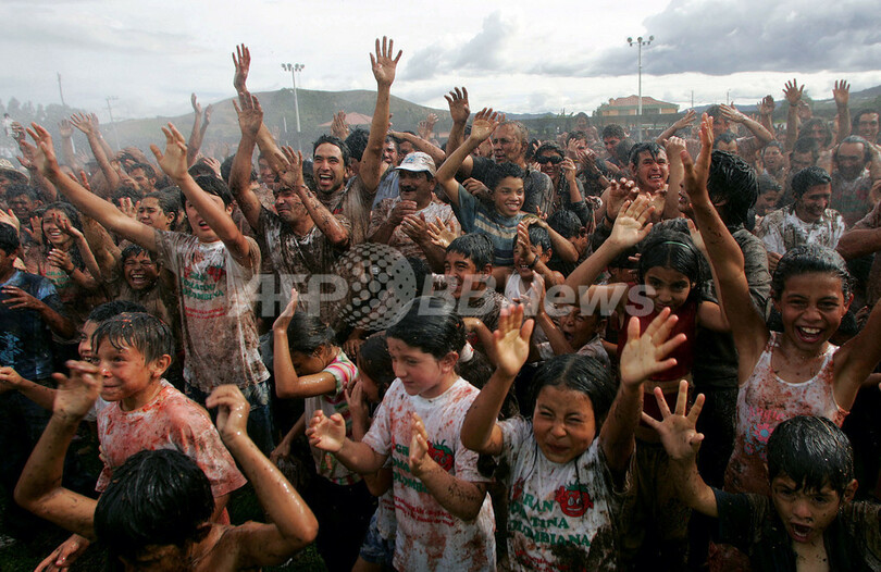 ニュース ライフ こぼれ話 街中が真っ赤でドロドロ、コロンビアのトマト投げ祭り 2008年6月2日 14:47 発信地:ボジャカ/コロンビア [ 中南米 コロンビア ] このニュースをシェア ‹ › ❮ 9/12 ❯ ロンビアのボジャカ(Boyaca)で開催されたトマト投げ祭「IV Tomatina Colombiana」に参加する地元住民ら(2008年6月1日撮影)。(c)AFP/Mauricio Duenas 画像作成中 ! 【6月2日 AFP】コロンビアのボジャカ(Boyaca)で1日、毎年恒例のトマト投げ祭り「Tomatina Colombiana」が開催された。主催者によると、計約10トンのトマトが投げられたという。「トマトの海」に飛び込んで楽しむ参加者の姿も見られた。(c)AFP ライフ 一覧へ> メディア・報道関係・法人の方向け 写真・動画 購入のお問合せ>