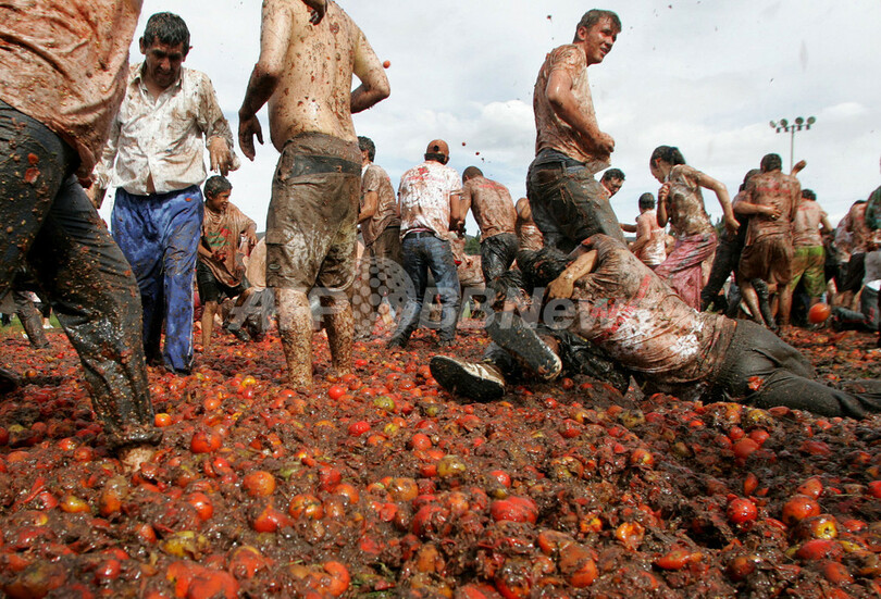 ニュース ライフ こぼれ話 街中が真っ赤でドロドロ、コロンビアのトマト投げ祭り 2008年6月2日 14:47 発信地:ボジャカ/コロンビア [ 中南米 コロンビア ] このニュースをシェア ‹ › ❮ 4/12 ❯ ロンビアのボジャカ(Boyaca)で開催されたトマト投げ祭り「IV Tomatina Colombiana」に参加する地元住民ら(2008年6月1日撮影)。(c)AFP/Mauricio Duenas 画像作成中 ! 【6月2日 AFP】コロンビアのボジャカ(Boyaca)で1日、毎年恒例のトマト投げ祭り「Tomatina Colombiana」が開催された。主催者によると、計約10トンのトマトが投げられたという。「トマトの海」に飛び込んで楽しむ参加者の姿も見られた。(c)AFP ライフ 一覧へ> メディア・報道関係・法人の方向け 写真・動画 購入のお問合せ>
