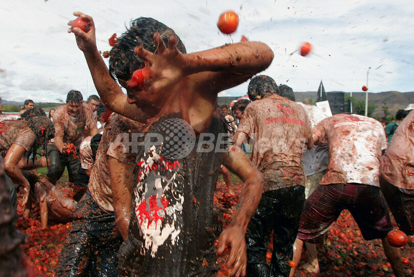 ニュース ライフ こぼれ話 街中が真っ赤でドロドロ、コロンビアのトマト投げ祭り 2008年6月2日 14:47 発信地:ボジャカ/コロンビア [ 中南米 コロンビア ] このニュースをシェア ‹ › ❮ 3/12 ❯ ロンビアのボジャカ(Boyaca)で開催されたトマト投げ祭り「IV Tomatina Colombiana」に参加する地元住民ら(2008年6月1日撮影)。(c)AFP/Mauricio Duenas 画像作成中 ! 【6月2日 AFP】コロンビアのボジャカ(Boyaca)で1日、毎年恒例のトマト投げ祭り「Tomatina Colombiana」が開催された。主催者によると、計約10トンのトマトが投げられたという。「トマトの海」に飛び込んで楽しむ参加者の姿も見られた。(c)AFP ライフ 一覧へ> メディア・報道関係・法人の方向け 写真・動画 購入のお問合せ>