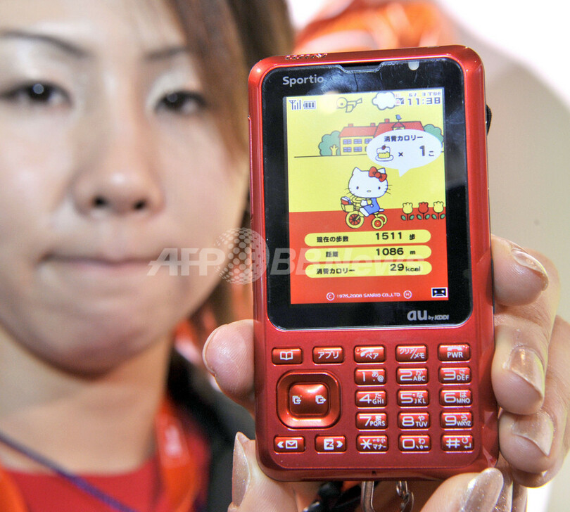 Sportio」はランニングやウオーキングを楽しむ利用者向けのLISMO Video対応機種で、歩数・距離・消費カロリーを自動で測定、確認できる機能を搭載している。(c)AFP