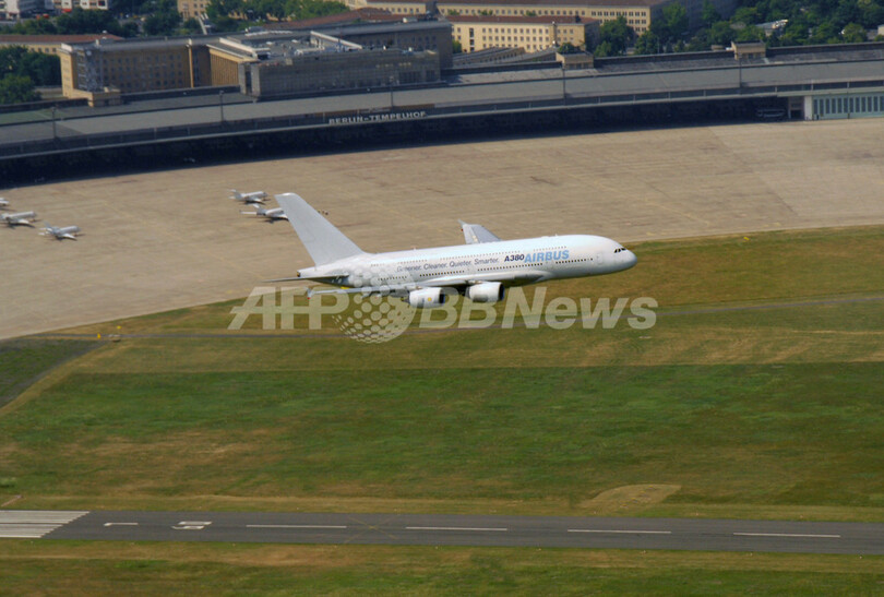 【6月4日 AFP】欧州航空機大手エアバス(Airbus)と親会社の欧州航空防衛宇宙会社(EADS)は1日、1948-49年の「ベルリン封鎖」で実施された空輸作戦から60年を記念して、作戦で使用されたドイツ・ベルリン(Berlin)のテンペルホフ(Tempelhof)空港上空を世界最大の旅客機エアバス「A380」が飛行したと発表した。