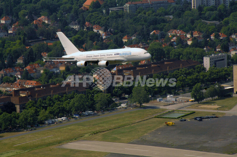 【6月4日 AFP】欧州航空機大手エアバス(Airbus)と親会社の欧州航空防衛宇宙会社(EADS)は1日、1948-49年の「ベルリン封鎖」で実施された空輸作戦から60年を記念して、作戦で使用されたドイツ・ベルリン(Berlin)のテンペルホフ(Tempelhof)空港上空を世界最大の旅客機エアバス「A380」が飛行したと発表した。