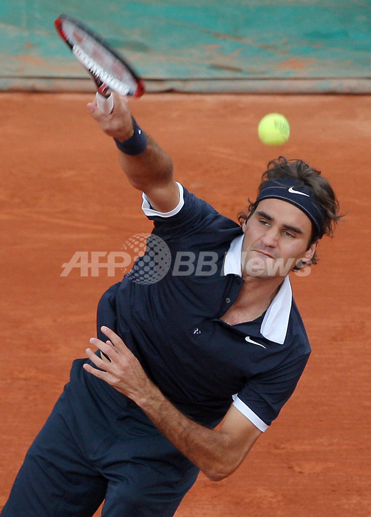 【6月5日 AFP】(一部更新、写真追加)全仏オープン・テニス2008(French Open 2008)男子シングルス準々決勝。大会第1シードのロジャー・フェデラー(Roger Federer、スイス)は、大会第24シードのフェルナンド・ゴンザレス(Fernando Gonzalez、チリ)と対戦。フェデラーはセットカウント3-1(2-6、6-2、6-3、6-4)でゴンザレスを下し、準決勝進出を決めた。