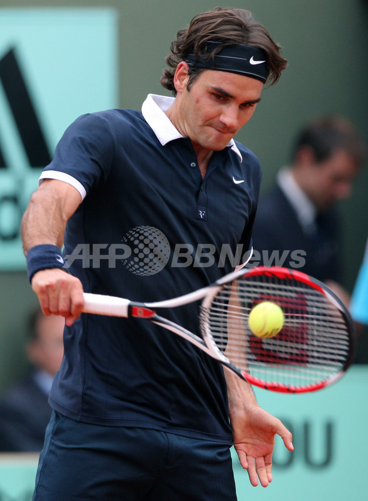 【6月5日 AFP】(一部更新、写真追加)全仏オープン・テニス2008(French Open 2008)男子シングルス準々決勝。大会第1シードのロジャー・フェデラー(Roger Federer、スイス)は、大会第24シードのフェルナンド・ゴンザレス(Fernando Gonzalez、チリ)と対戦。フェデラーはセットカウント3-1(2-6、6-2、6-3、6-4)でゴンザレスを下し、準決勝進出を決めた。