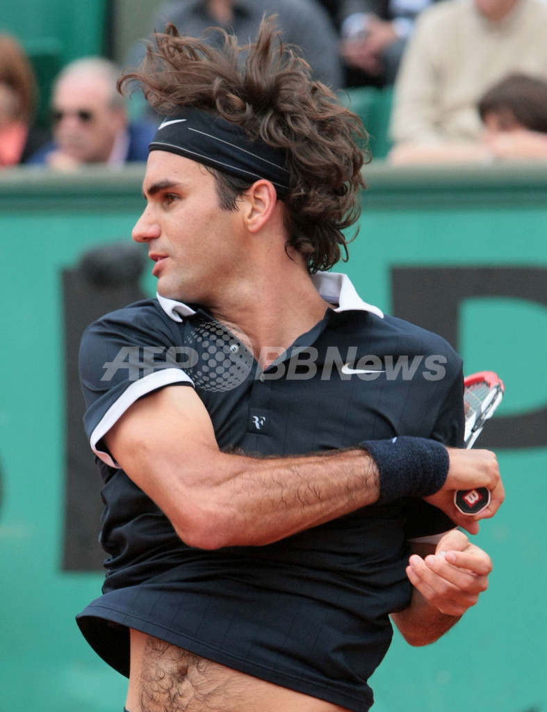 【6月5日 AFP】(一部更新、写真追加)全仏オープン・テニス2008(French Open 2008)男子シングルス準々決勝。大会第1シードのロジャー・フェデラー(Roger Federer、スイス)は、大会第24シードのフェルナンド・ゴンザレス(Fernando Gonzalez、チリ)と対戦。フェデラーはセットカウント3-1(2-6、6-2、6-3、6-4)でゴンザレスを下し、準決勝進出を決めた。