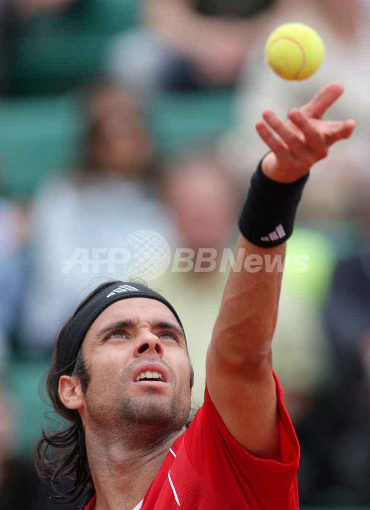 【6月5日 AFP】(一部更新、写真追加)全仏オープン・テニス2008(French Open 2008)男子シングルス準々決勝。大会第1シードのロジャー・フェデラー(Roger Federer、スイス)は、大会第24シードのフェルナンド・ゴンザレス(Fernando Gonzalez、チリ)と対戦。フェデラーはセットカウント3-1(2-6、6-2、6-3、6-4)でゴンザレスを下し、準決勝進出を決めた。