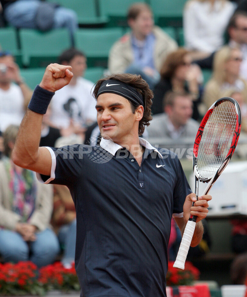 【6月5日 AFP】(一部更新、写真追加)全仏オープン・テニス2008(French Open 2008)男子シングルス準々決勝。大会第1シードのロジャー・フェデラー(Roger Federer、スイス)は、大会第24シードのフェルナンド・ゴンザレス(Fernando Gonzalez、チリ)と対戦。フェデラーはセットカウント3-1(2-6、6-2、6-3、6-4)でゴンザレスを下し、準決勝進出を決めた。
