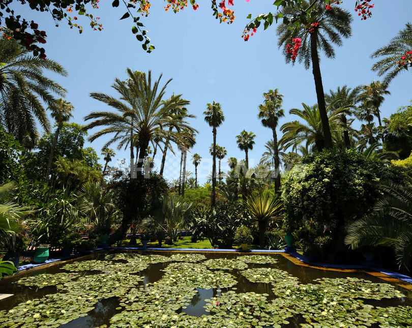建造物の外壁などに使われた鮮やかなブルーが特徴。庭園内のイスラム美術館(Islamic Art Museum of Marrakech)には、サンローラン氏が所有していた北アフリカのテキスタイルや、陶器やジュエリー、マジョレルの絵画などが展示されている。