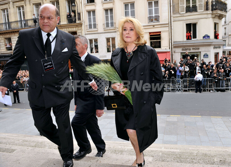 葬儀には、ニコラ・サルコジ(Nicolas Sarkozy)仏大統領と妻で元モデルのカーラ・ブルーニ(Carla Bruni)夫人、ベルトラン・ドラノエ(Bertrand Delanoe)パリ市長、ファラ元イラン王妃(Farah Diba)、サンローラン氏のミューズだった女優カトリーヌ・ドヌーブ(Catherine Deneuve)、ルル・ドゥ・ラ・ファレーズ(Loulou de la Falaise)、モデルのレティシア・カスタ(Laetitia Casta)らが出席。
