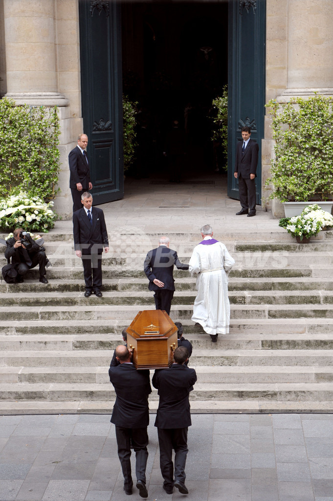 葬儀には、ニコラ・サルコジ(Nicolas Sarkozy)仏大統領と妻で元モデルのカーラ・ブルーニ(Carla Bruni)夫人、ベルトラン・ドラノエ(Bertrand Delanoe)パリ市長、ファラ元イラン王妃(Farah Diba)、サンローラン氏のミューズだった女優カトリーヌ・ドヌーブ(Catherine Deneuve)、ルル・ドゥ・ラ・ファレーズ(Loulou de la Falaise)、モデルのレティシア・カスタ(Laetitia Casta)らが出席。