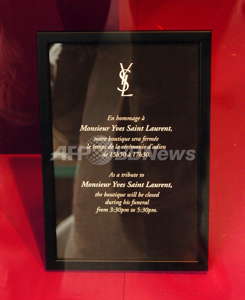 葬儀には、ニコラ・サルコジ(Nicolas Sarkozy)仏大統領と妻で元モデルのカーラ・ブルーニ(Carla Bruni)夫人、ベルトラン・ドラノエ(Bertrand Delanoe)パリ市長、ファラ元イラン王妃(Farah Diba)、サンローラン氏のミューズだった女優カトリーヌ・ドヌーブ(Catherine Deneuve)、ルル・ドゥ・ラ・ファレーズ(Loulou de la Falaise)、モデルのレティシア・カスタ(Laetitia Casta)らが出席。