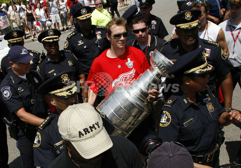 スポーツ ウインタースポーツ レッドウィングス デトロイトで優勝パレード 2008年6月7日 7:44 発信地:デトロイト/米国 [ 北米 米国 ] このニュースをシェア ‹ › ❮ 10/10 ❯ 07-08NHLスタンレー杯を制し優勝パレードでスタンレー杯を運ぶレッドウィングスのニクラス・リドストロム(%%Nicklas Lidstrom%%)。(2008年6月6日撮影)(c)AFP/Getty Images/Gregory Shamus 画像作成中 ! 【6月6日 AFP】ピッツバーグ・ペンギンズ(Pittsburgh Penguins)を通算4勝2敗で下しNHLスタンレー杯(Stanley Cup 2008)を制したデトロイト・レッドウィングス(Detroit Red Wings)は6日、デトロイト(Detroit)で優勝パレードを行った。(c)AFP ウインタースポーツ 一覧へ> メディア・報道関係・法人の方向け 写真・動画 購入のお問合せ>