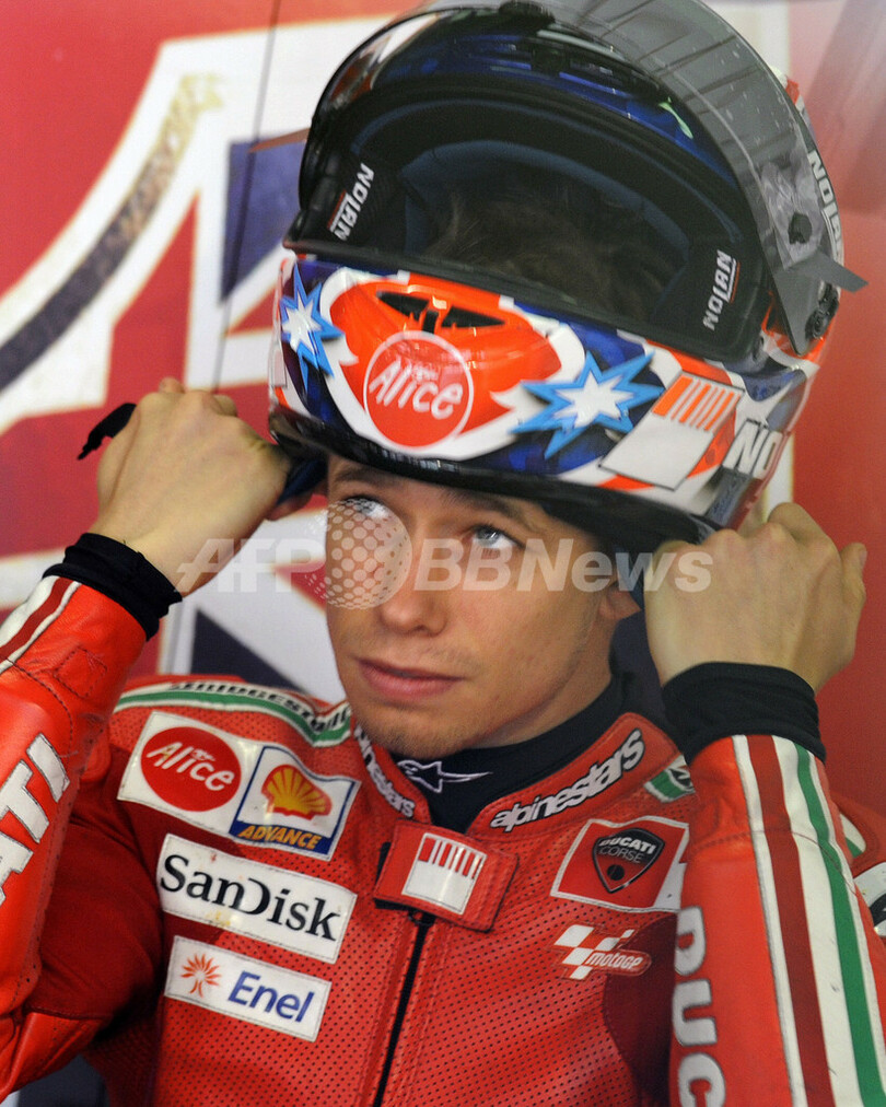 【6月7日 AFP】世界ロードレース選手権(WGP 2008)第7戦・カタルーニャGP・MotoGPクラス、フリー走行3回目。ドゥカティ・マールボロ(Ducati Marlboro)のケーシー・ストーナー(Casey Stoner)は、16周を走行してトップとなる1分43秒013を記録した。