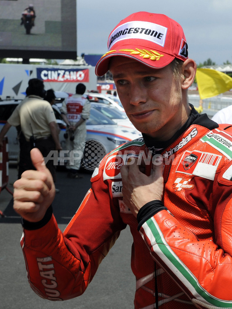 【6月8日 AFP】世界ロードレース選手権(WGP 2008)第7戦・カタルーニャGP・MotoGPクラス予選。ドゥカティ・マールボロ(Ducati Marlboro)のケーシー・ストーナー(Casey Stoner)は、24周を走行してベストラップ1分41秒186を記録し、シーズン初のポールポジションを獲得した。