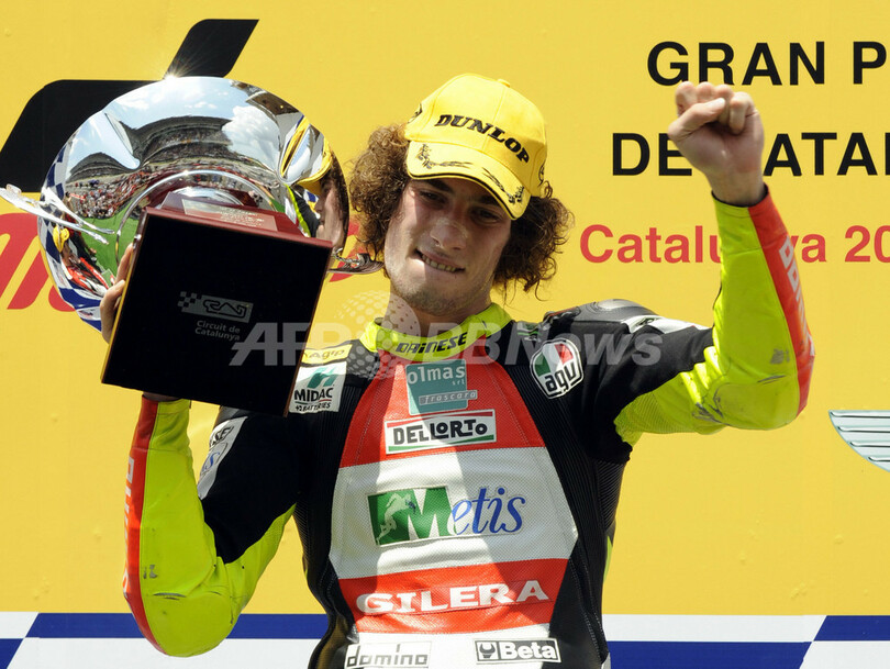 【6月8日 AFP】世界ロードレース選手権(WGP 2008)第7戦・カタルーニャGP・250ccクラス、決勝。2番グリッドからスタートしたメティス・ジレラ(Metis Gilera)のマルコ・シモンセッリ(Marco Simoncelli)は、41分01秒859のタイムをマークして優勝を果たした。