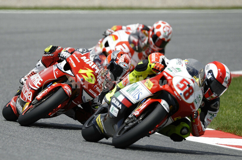 【6月8日 AFP】世界ロードレース選手権(WGP 2008)第7戦・カタルーニャGP・250ccクラス、決勝。2番グリッドからスタートしたメティス・ジレラ(Metis Gilera)のマルコ・シモンセッリ(Marco Simoncelli)は、41分01秒859のタイムをマークして優勝を果たした。