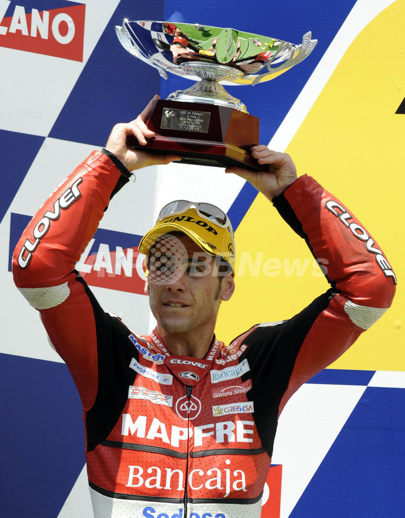 【6月8日 AFP】世界ロードレース選手権(WGP 2008)第7戦・カタルーニャGP・250ccクラス、決勝。2番グリッドからスタートしたメティス・ジレラ(Metis Gilera)のマルコ・シモンセッリ(Marco Simoncelli)は、41分01秒859のタイムをマークして優勝を果たした。