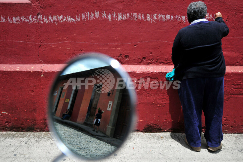 ニュース ライフ 内戦の犠牲者に捧げる展覧会、グアテマラ 2008年6月9日 22:49 発信地:アンティグア/グアテマラ [ 中南米 グアテマラ ] このニュースをシェア ‹ › ❮ 8/10 ❯ グアテマラの首都グアテマラ市(Guatemala City)の西約45キロのアンティグア(Antigua)での展示会「The Disappeared」で、グアテマラ内戦(1960-96)の死者数を表現するため壁に4万5000本の線を引くグアテマラの芸術家イサベル・ルイス(Isabel Ruiz)のパフォーマンス『Matematica Sustractiva(引き算)』(2008年6月7日撮影)。(c)AFP/Eitan Abramovich 画像作成中 ! 【6月9日 AFP】グアテマラの首都グアテマラ市(Guatemala City)の西約45キロのアンティグア(Antigua)で7日、同国の現代美術作家によるパフォーマンスが行われた。この催しは、中南米の芸術家25人による、1960-96年のグアテマラ内戦下で起きた軍事政権による誘拐、拷問、虐殺をテーマにした展覧会「The Disappeared」の一環。(c)AFP ライフ 一覧へ> メディア・報道関係・法人の方向け 写真・動画 購入のお問合せ>