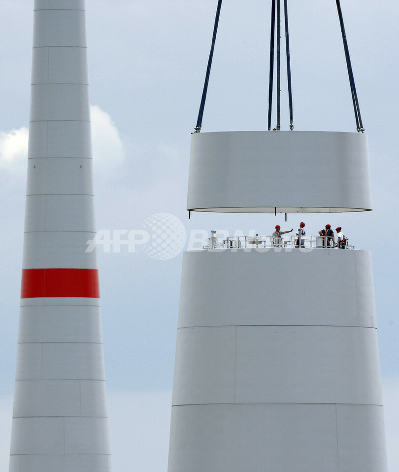 ニュース 政治・経済 こぼれ話 ドイツで発電用の風車を建設 2008年6月13日 9:06 発信地:シューネフェルト/ドイツ [ ヨーロッパ ドイツ ] このニュースをシェア ‹ › ❮ 5/7 ❯ ドイツ東部ブランデンブルク(Brandenburg)州シューネフェルト(Schonefeld)で建設中のドイツEnertrag社の風力発電設備(2008年6月10日撮影)。(c)AFP/DDP/MICHAEL URBAN 画像作成中 ! 【6月13日 AFP】ドイツ東部ブランデンブルク(Brandenburg)州シューネフェルト(Schonefeld)にあるエネルギー開発企業Enertragの風力発電所で、発電用風車の建設が進められている。Enertag社は、ドイツ、フランス、英国に発電用風車計350基を有しており、年間10億キロワット時の電力を供給している。(c)AFP 政治・経済 一覧へ> メディア・報道関係・法人の方向け 写真・動画 購入のお問合せ>