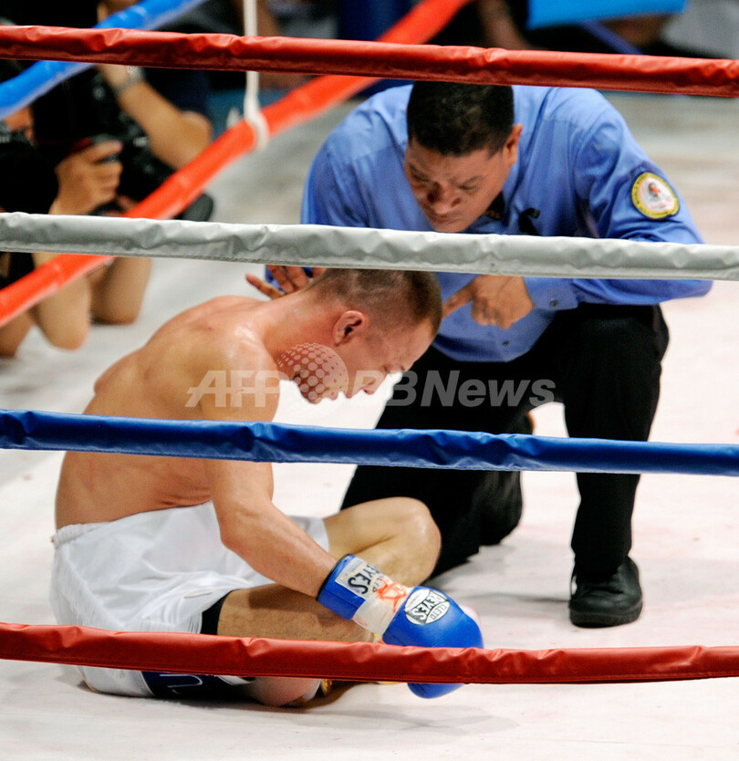 スポーツ スポーツ その他 バレロ 嶋田を7ラウンドTKOで下し4度目の防衛果たす 2008年6月13日 6:56 発信地:東京 [ アジア・オセアニア 東京 ] このニュースをシェア ‹ › ❮ 2/8 ❯ カウントを取られる嶋田雄大。(2008年6月12日撮影)(c)AFP/Toru YAMANAKA 画像作成中 ! 【6月13日 AFP】ボクシング、WBA世界スーパーフェザーライト級タイトル戦。王者エドウィン・バレロ(Edwin Valero、ベネズエラ)は、挑戦者の嶋田雄大(Takehiro Shimada、日本)と対戦。バレロは7ラウンドTKO勝利を収め、4度目の防衛を果たした。(c)AFP スポーツ その他 一覧へ> メディア・報道関係・法人の方向け 写真・動画 購入のお問合せ>