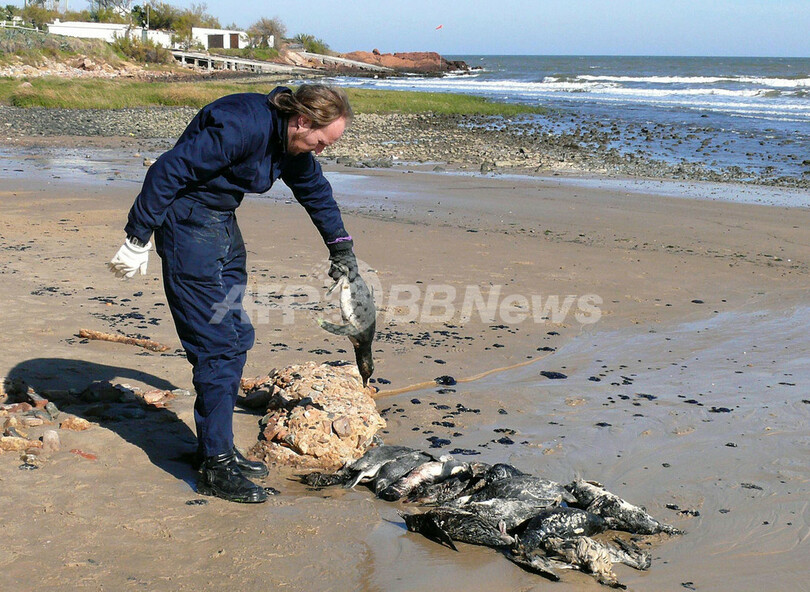 ペンギンも油まみれに、モンテビデオの商業船衝突事故