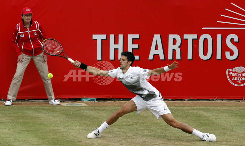 【6月14日 AFP】男子テニス、アルトワ選手権2008(The Artois Championships 2008)シングルス準々決勝。大会第2シードのノバク・ジョコビッチ(Novak Djokovic、セルビア)は、大会第11シードのレイトン・ヒューイット(Lleyton Hewitt、オーストラリア)と対戦。ジョコビッチはセットカウント2-0(6-2、6-2)のストレートでヒューイットを下し、準決勝へ進出を決めた。(c)AFP