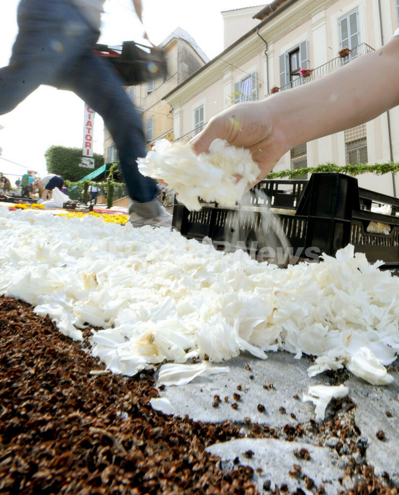 ニュース ライフ こぼれ話 花びらで描く精緻なアート、ローマの花じゅうたんの祭り 2008年6月16日 14:43 発信地:ローマ/イタリア [ ヨーロッパ イタリア ] このニュースをシェア ‹ › ❮ 8/11 ❯ イタリア・ローマ(Rome)南部にあるジェンツァーノ(Genzano)で開催された、花びらじゅうたんの祭り「infiorata(インフィオラータ)」に出品された作品(2008年6月15日撮影)。(c)AFP/Tiziana Fabi 画像作成中 ! 【6月16日 AFP】イタリア・ローマ(Rome)南部にあるジェンツァーノ(Genzano)で15日、花じゅうたんの祭り「Infiorata(インフィオラータ)」が開催され、花びらを地面に敷きつめて絵柄を描くアート作品が多数展示された。(c)AFP ライフ 一覧へ> メディア・報道関係・法人の方向け 写真・動画 購入のお問合せ>