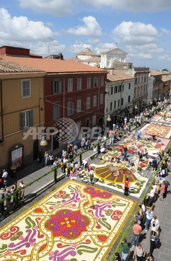 ニュース ライフ こぼれ話 花びらで描く精緻なアート、ローマの花じゅうたんの祭り 2008年6月16日 14:43 発信地:ローマ/イタリア [ ヨーロッパ イタリア ] このニュースをシェア ‹ › ❮ 4/11 ❯ イタリア・ローマ(Rome)南部にあるジェンツァーノ(Genzano)で開催された、花びらじゅうたんの祭り「infiorata(インフィオラータ)」に出品された作品(2008年6月15日撮影)。(c)AFP/Tiziana Fabi 画像作成中 ! 【6月16日 AFP】イタリア・ローマ(Rome)南部にあるジェンツァーノ(Genzano)で15日、花じゅうたんの祭り「Infiorata(インフィオラータ)」が開催され、花びらを地面に敷きつめて絵柄を描くアート作品が多数展示された。(c)AFP ライフ 一覧へ> メディア・報道関係・法人の方向け 写真・動画 購入のお問合せ>