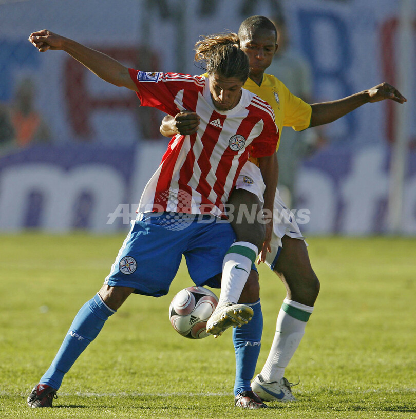 【6月16日 AFP】2010年サッカーW杯南アフリカ大会(2010 World Cup)・南米予選第5節、パラグアイ対ブラジル。試合はパラグアイが2-0で快勝し、通算成績を4勝1分けとして首位をキープした。