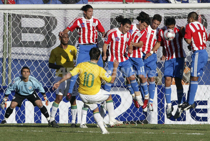 【6月16日 AFP】2010年サッカーW杯南アフリカ大会(2010 World Cup)・南米予選第5節、パラグアイ対ブラジル。試合はパラグアイが2-0で快勝し、通算成績を4勝1分けとして首位をキープした。
