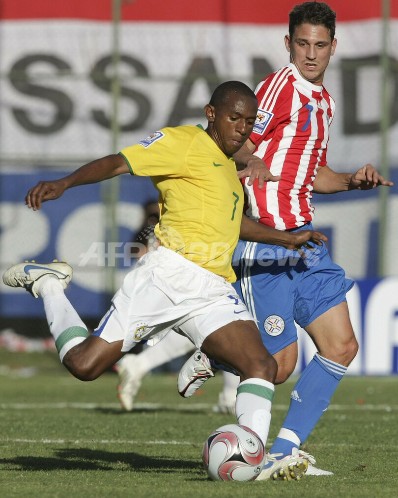 【6月16日 AFP】2010年サッカーW杯南アフリカ大会(2010 World Cup)・南米予選第5節、パラグアイ対ブラジル。試合はパラグアイが2-0で快勝し、通算成績を4勝1分けとして首位をキープした。