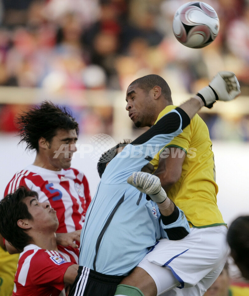 【6月16日 AFP】2010年サッカーW杯南アフリカ大会(2010 World Cup)・南米予選第5節、パラグアイ対ブラジル。試合はパラグアイが2-0で快勝し、通算成績を4勝1分けとして首位をキープした。