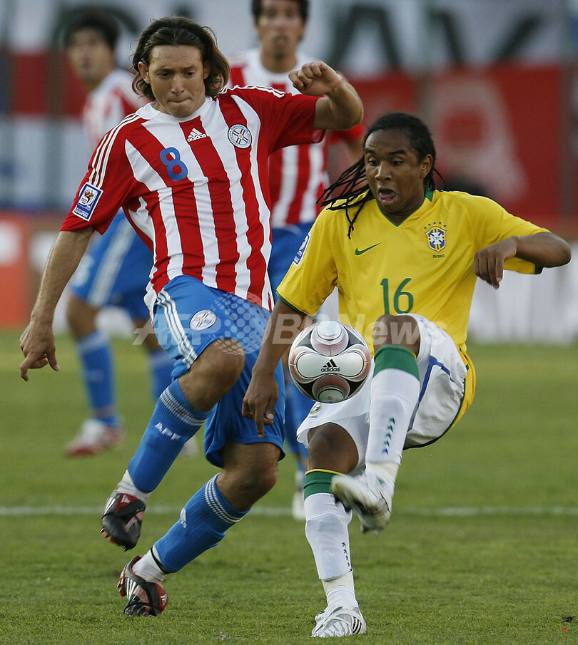 【6月16日 AFP】2010年サッカーW杯南アフリカ大会(2010 World Cup)・南米予選第5節、パラグアイ対ブラジル。試合はパラグアイが2-0で快勝し、通算成績を4勝1分けとして首位をキープした。