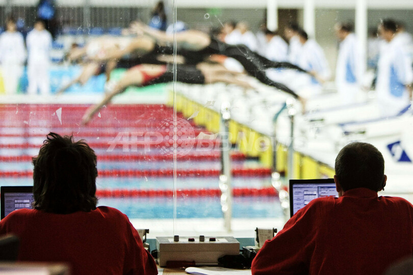 北京五輪の各競技会場に設置されるオメガ社の計測機器の総量は420トン。これはボーイング(Boeing)747型機に相当する重量だ。これらの機器の精度維持のため、技術者450人、ボランティア1000人が投入される。(c)AFP/Hui Min Neo
