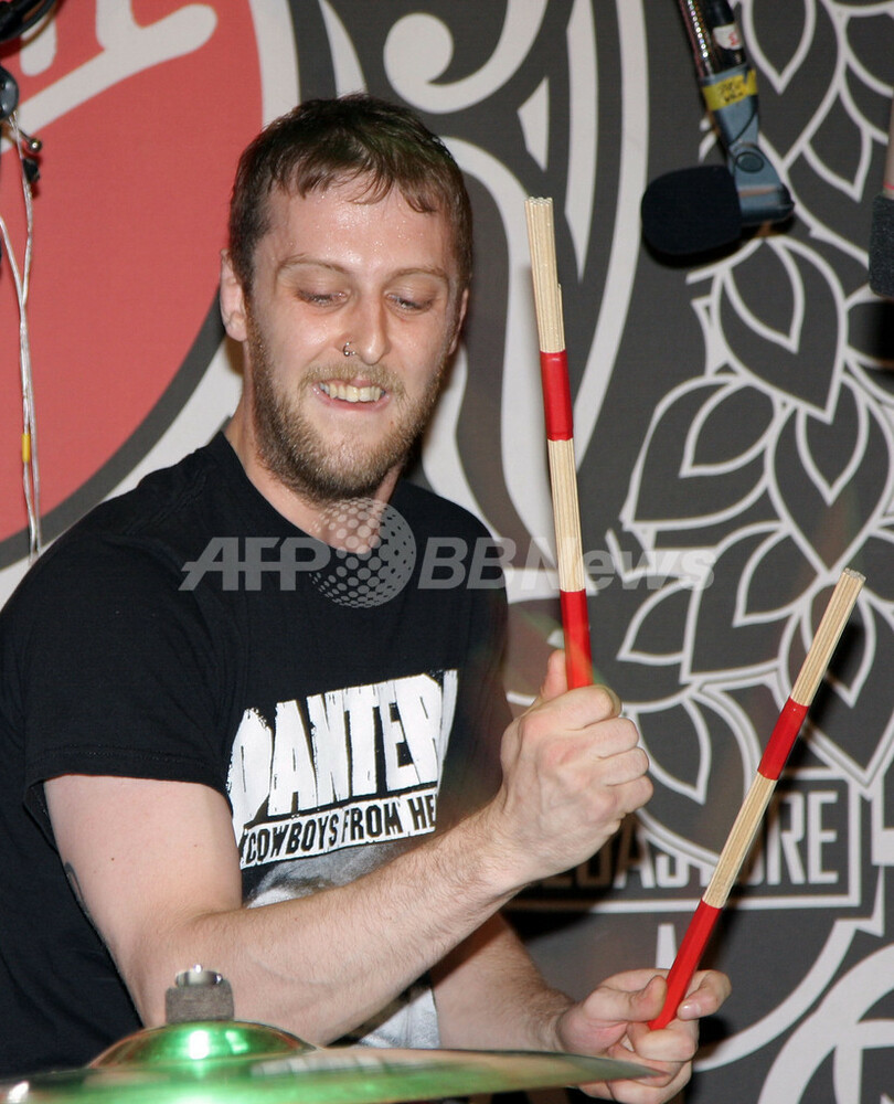 ニューヨーク(New York)にあるヴァージン・メガストア(Virgin Megastore)ユニオンスクエア(Union Square)店でニューアルバム『Here We Stand』のプロモーションを行うロックバンド、ザ・フラテリス(The Fratellis)のMince Fratelli(2008年6月13日撮影)。(c)AFP/Getty Images/Will Ragozzino
