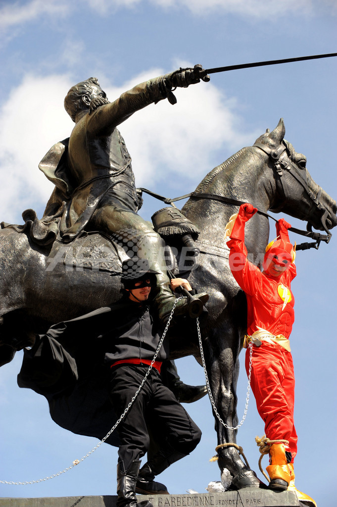 ニュース ライフ こぼれ話 スパイダーマンや怪傑ゾロが子どもの共同親権を要求? 2008年6月16日 12:17 発信地:ボゴタ/コロンビア [ 中南米 コロンビア ] このニュースをシェア ‹ › ❮ 2/3 ❯ コロンビアのボゴタ(Bogota)で、正義のヒーローである怪傑ゾロ(左)、フラッシュの仮装をして南米独立運動指導者のシモン・ボリバル(Simon Bolivar)の彫像の台に上り、 子どもの共同親権を要求する離婚をした父親3人(2008年6月13日撮影)。(c)AFP/Rodrigo Arangua 画像作成中 ! 【6月16日 AFP】コロンビアのボゴタ(Bogota)で13日、離婚をした父親3人が正義のヒーローであるスパイダーマン、怪傑ゾロ、フラッシュのふん装で南米独立運動指導者のシモン・ボリバル(Simon Bolivar)の彫像の台に上り、 子どもの共同親権を要求するという珍事が起きた。(c)AFP ライフ 一覧へ> メディア・報道関係・法人の方向け 写真・動画 購入のお問合せ>
