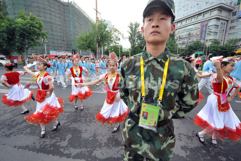 五輪 北京五輪の聖火リレー、新疆ウイグル自治区ウルムチで開催 2008年6月17日 16:20 発信地:ウルムチ/中国 [ 中国・台湾 中国 ] このニュースをシェア ‹ › ❮ 6/7 ❯ 中国・新疆ウイグル自治区(Xinjiang Uighur Autonomous Region)ウルムチ(Urumqi)で行われた北京五輪の聖火リレーの出発式で、兵士が警戒する中、ダンスを披露する地元舞踊団(2008年6月17日撮影)。(c)AFP/Frederic J. BROWN 画像作成中 ! 【6月17日 AFP】中国・新疆ウイグル自治区(Xinjiang Uighur Autonomous Region)のウルムチ(Urumqi)で17日、北京五輪の聖火リレーが開催された。同自治区は、イスラム教徒が住民の多数を占めており、中国政府も厳しい警備態勢を敷いている。リレー中は、市内各所には警察当局の検問所が設けられ、交通が規制された。(c)AFP 五輪 一覧へ> メディア・報道関係・法人の方向け 写真・動画 購入のお問合せ>