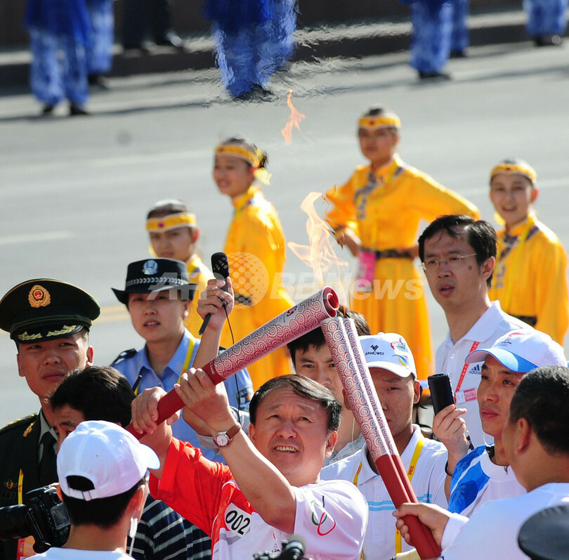 五輪 北京五輪の聖火リレー、新疆ウイグル自治区ウルムチで開催 2008年6月17日 16:20 発信地:ウルムチ/中国 [ 中国・台湾 中国 ] このニュースをシェア ‹ › ❮ 3/7 ❯ 中国・新疆ウイグル自治区(Xinjiang Uighur Autonomous Region)ウルムチ(Urumqi)で行われた北京五輪の聖火リレーで、第2走者に聖火をつなぐ中国の元ボクシングチャンピオン、Abdul Xukur氏(右、2008年6月17日撮影)。(c)AFP/Frederic J. BROWN 画像作成中 ! 【6月17日 AFP】中国・新疆ウイグル自治区(Xinjiang Uighur Autonomous Region)のウルムチ(Urumqi)で17日、北京五輪の聖火リレーが開催された。同自治区は、イスラム教徒が住民の多数を占めており、中国政府も厳しい警備態勢を敷いている。リレー中は、市内各所には警察当局の検問所が設けられ、交通が規制された。(c)AFP 五輪 一覧へ> メディア・報道関係・法人の方向け 写真・動画 購入のお問合せ>