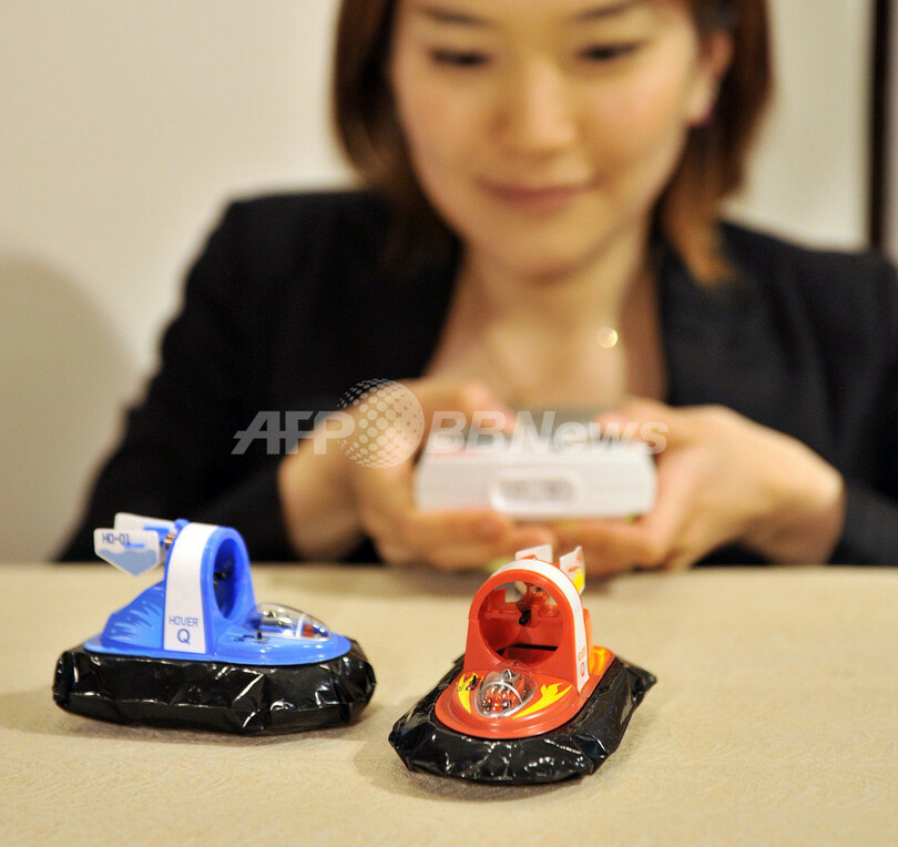 ニュース 政治・経済 タカラトミー、小型ホバークラフト「ホバーQ」を発表 2008年6月18日 10:53 発信地:東京 [ アジア・オセアニア 東京 ] このニュースをシェア ‹ › ❮ 2/3 ❯ 大手玩具メーカーのタカラトミー(Tomy)が公開した、新商品の小型ホバークラフト「ホバーQ(Hover-Q)」(2008年6月17日撮影)。(c)AFP/Yoshikazu TSUNO 画像作成中 ! 【6月18日 AFP】玩具メーカーのタカラトミー(Tomy)は17日、新商品の超小型ホバークラフト「ホバーQ(Hover-Q)」を都内で公開した。全長10センチメートル。赤外線コントロール方式で空中に浮く。19日から22日まで開催の東京おもちゃショー(Tokyo Toy Show)で公開される。(c)AFP 政治・経済 一覧へ> メディア・報道関係・法人の方向け 写真・動画 購入のお問合せ>